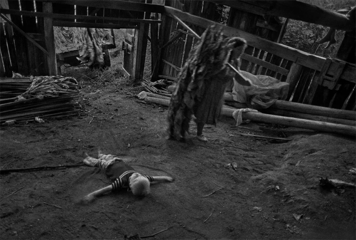 But I’ve also thought photographs should be a reflection of the photographer himself—his concerns, his interests, his instincts. The pictures have eerily religious overtones for me. It begins with the darkness, the soft late-evening light that speaks of quiet and invites you to look closely. The shrouds, crosses, and the gift of the dust angel takes me to the religious teachings of my youth. And the family—holy, saintly, together, everyone helping, cleansed by hard work, practicing the art of tobacco, Madison County’s economic religion.